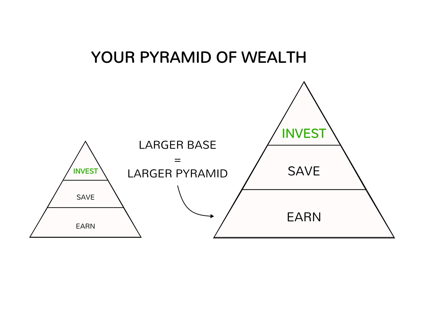 Earn more —> save more —> invest more.