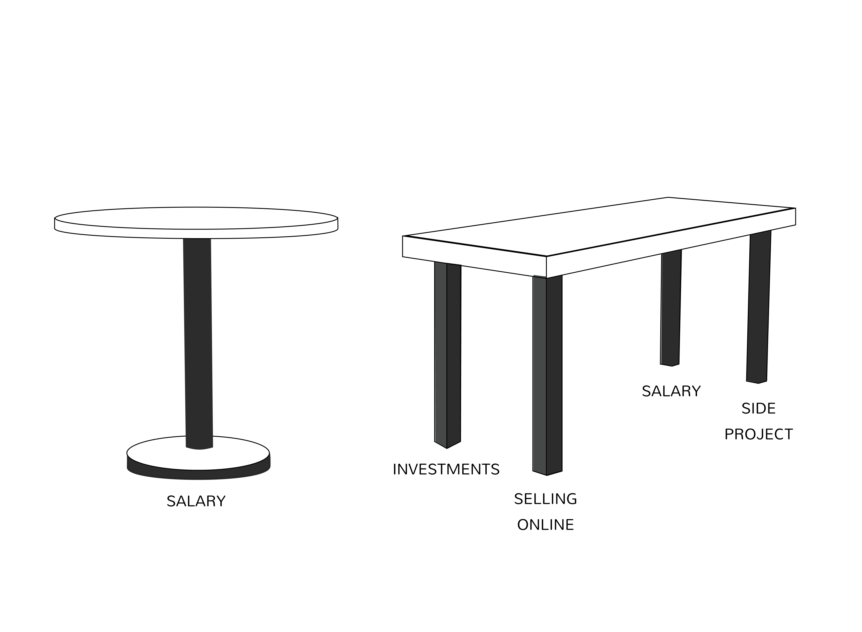 If you lose one leg of the table, it will still stand, (albeit slightly wonkily!)